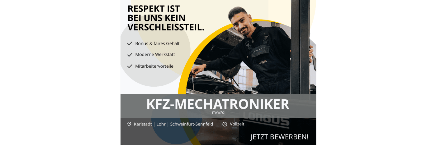 | Erfahrung | • Abgeschlossene Berufsausbildung als Kfz-Mechatroniker (m/w/d) |